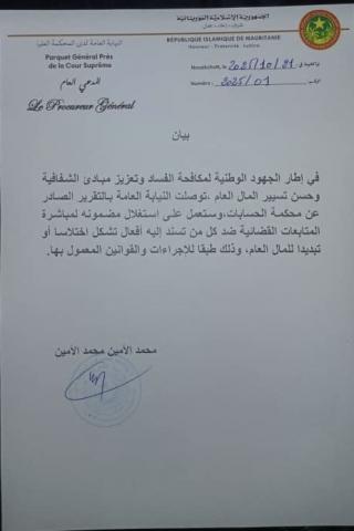 و قال بيان حصلت عليه مراسلون إن النيابة توصلت بتقرير محكمة الحسابات و سوف تشتغل على مضمونه