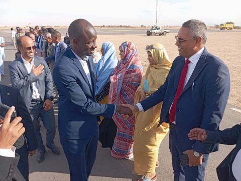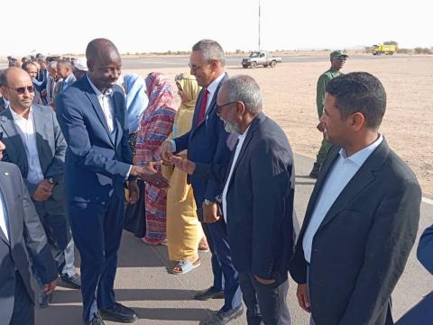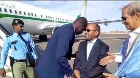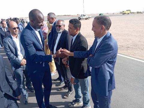 واستقبل الوزير في مطار ازويرات من قبل والي تيرس زمور الطيب ولد محمد محمود رئيس جهة تيرس زمور الحضرامي ولد احمادي والسلطات الإدارية والأمنية.